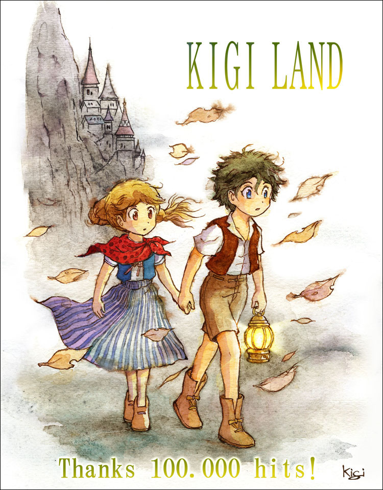 「100.000ヒット記念!」 なんと10万ヒット!!こんなトロ更新サイトに来て下さった方々に改めてお礼を。 ありがとうございます!!!m(_ _)m 当サイトの連作ショートマンガ「ハルン谷テイル」の表紙絵を今までちゃんと描いていなかったので(今ごろ)描いてみました。